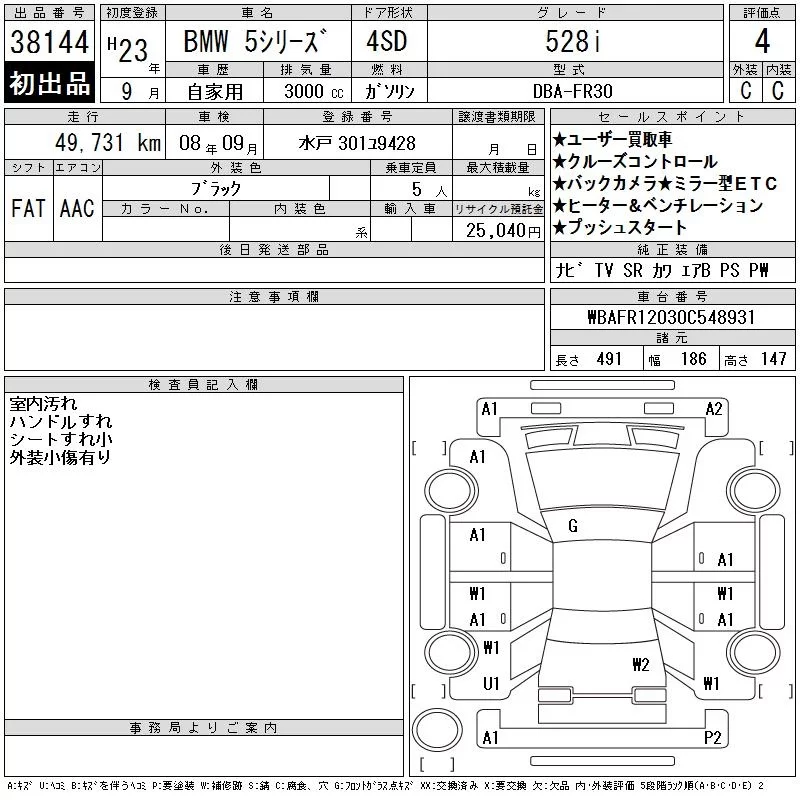 BMW 5-Series с аукциона Японии CAA Tokyo лот № 38144