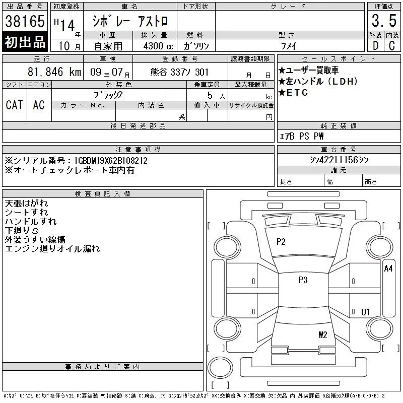 GM CHEVROLET ASTRO с аукциона Японии CAA Tokyo лот № 38165