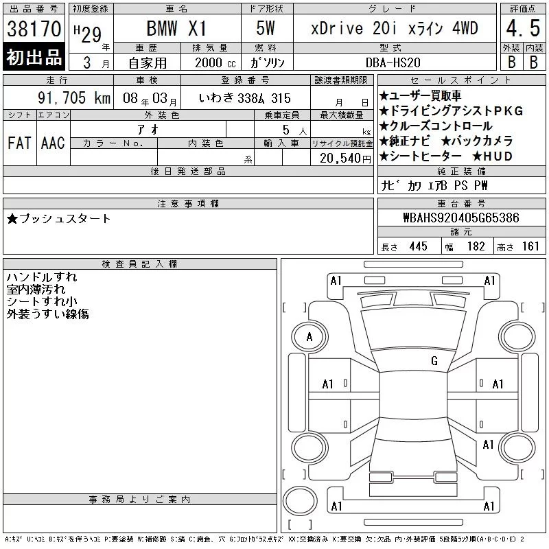 BMW X1 с аукциона Японии CAA Tokyo лот № 38170
