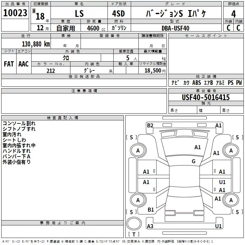 Lexus LS с аукциона Японии TAA Kinki лот № 10023