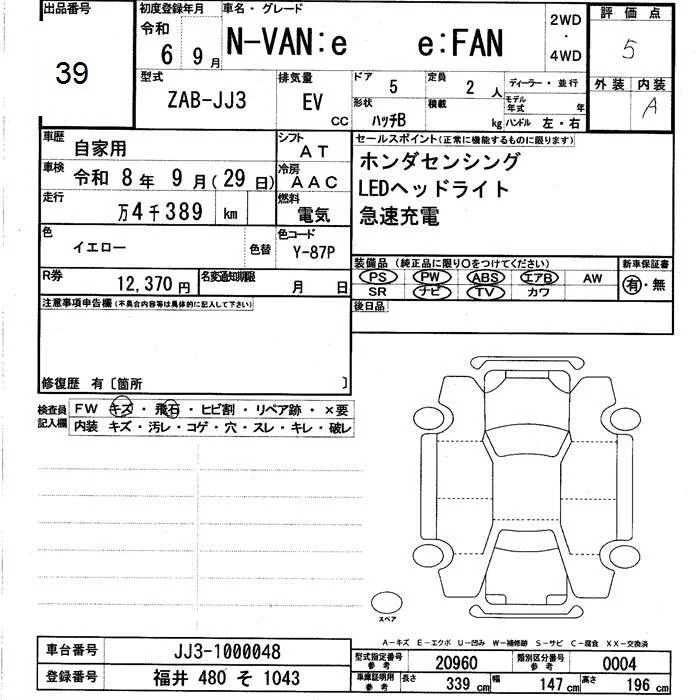 Honda N VAN E: с аукциона Японии JU Fukui лот № 39