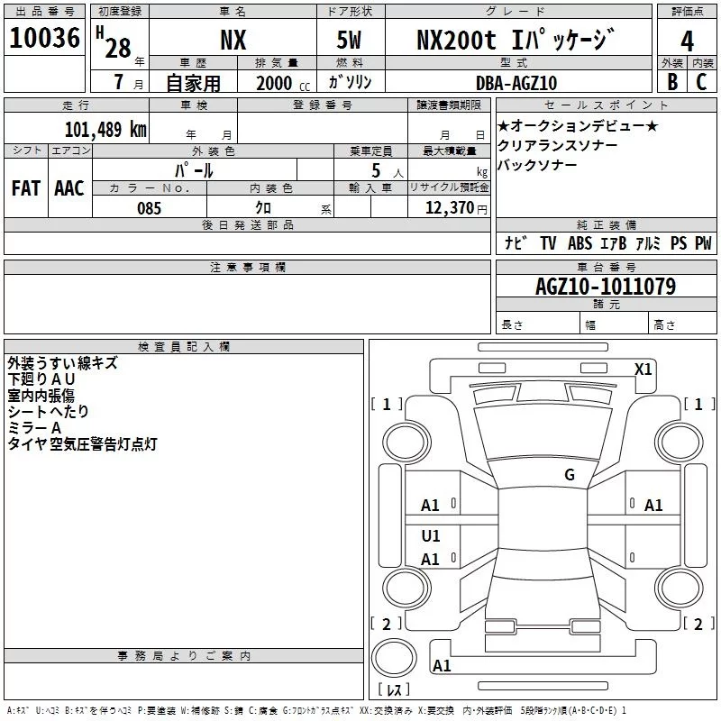 Lexus NX с аукциона Японии TAA Kinki лот № 10036