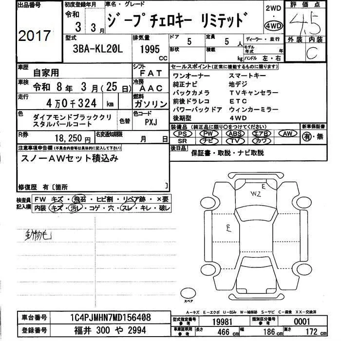 Chrysler JEEP CHEROKEE с аукциона Японии JU Fukui лот № 2017