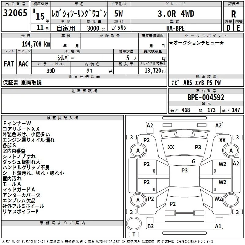 Subaru LEGACY с аукциона Японии TAA Kinki лот № 32065