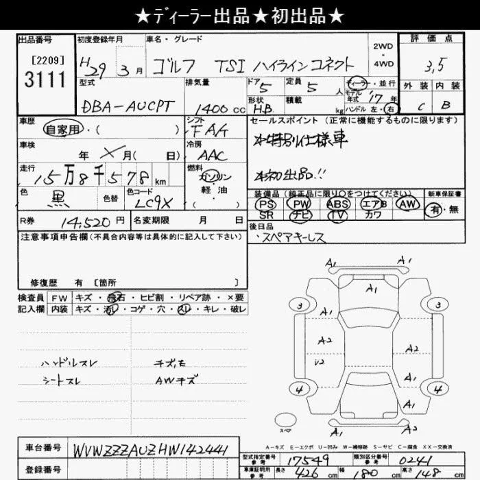 Volkswagen GOLF с аукциона Японии JU Saitama лот № 3111
