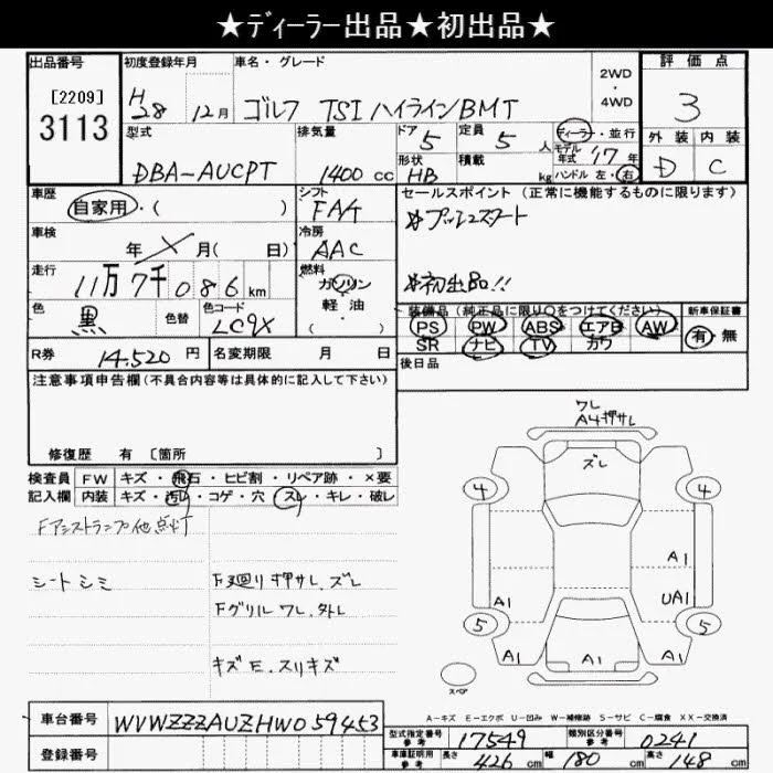 Volkswagen GOLF с аукциона Японии JU Saitama лот № 3113