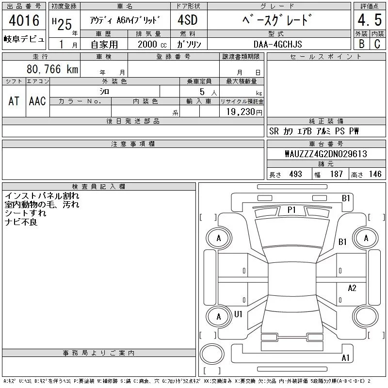 Audi A6 с аукциона Японии CAA Gifu лот № 4016