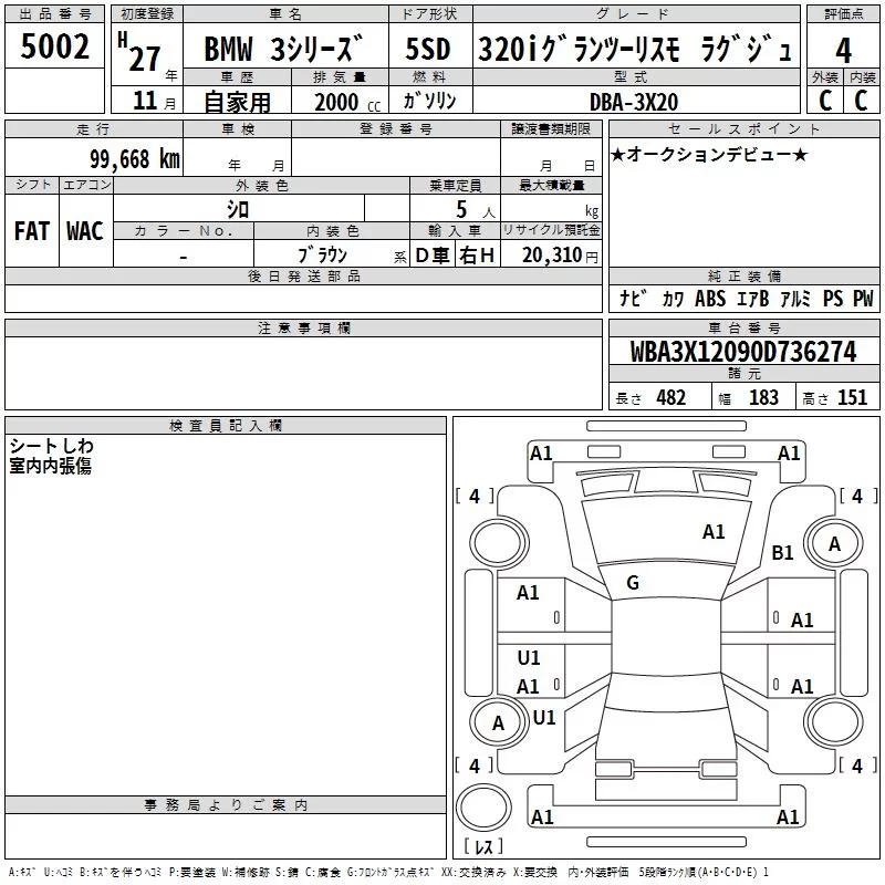 BMW 3-Series с аукциона Японии TAA Kinki лот № 5002