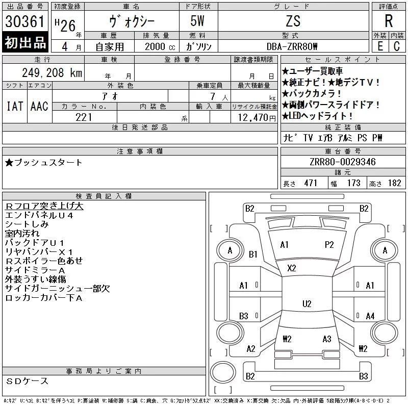 Toyota VOXY с аукциона Японии CAA Tokyo лот № 30361