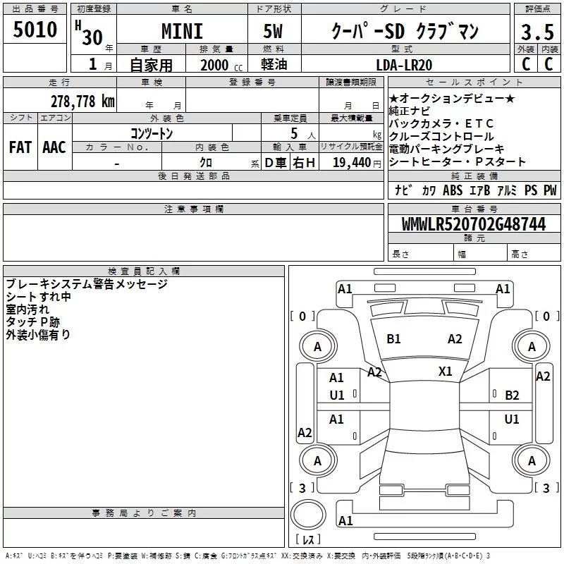 BMW MINI с аукциона Японии TAA Kinki лот № 5010