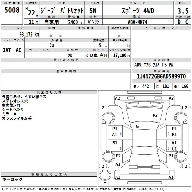 Chrysler JEEP PATRIOT с аукциона Японии TAA Shikoku лот № 5008