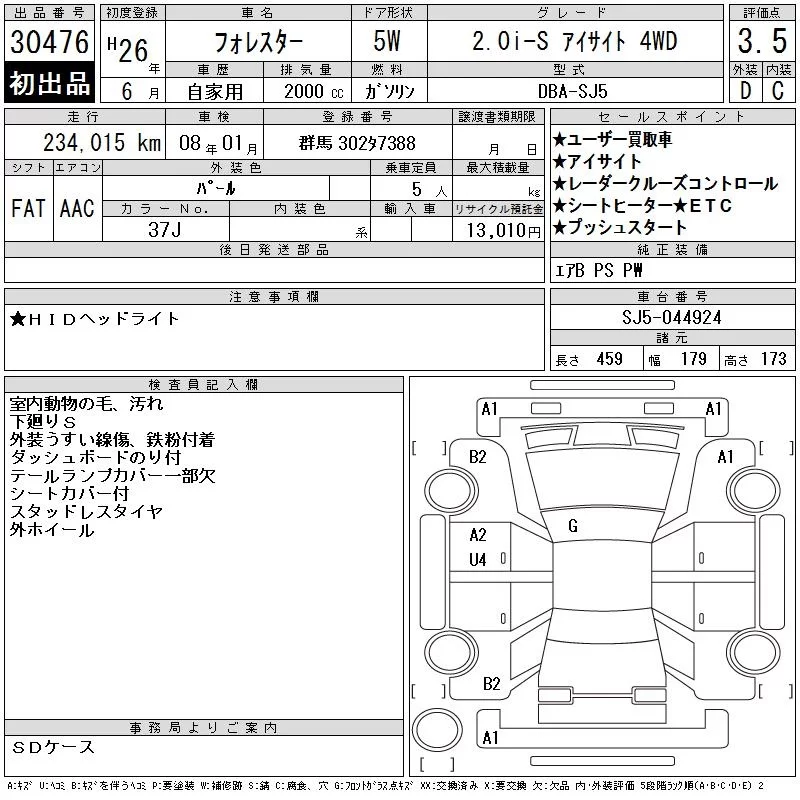 Subaru FORESTER с аукциона Японии CAA Tokyo лот № 30476