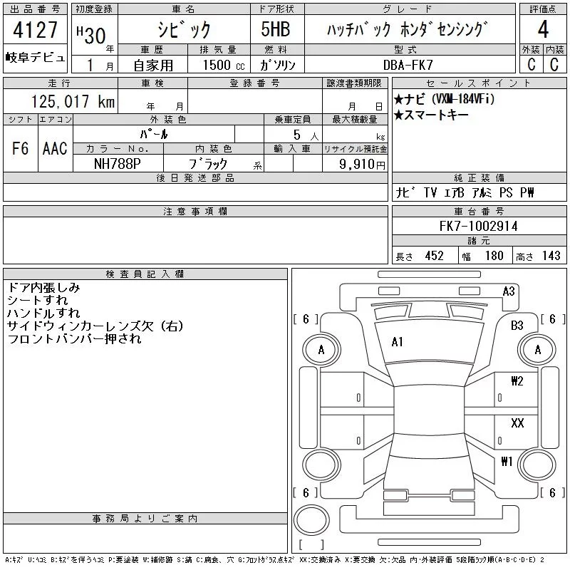 Honda CIVIC с аукциона Японии CAA Gifu лот № 4127