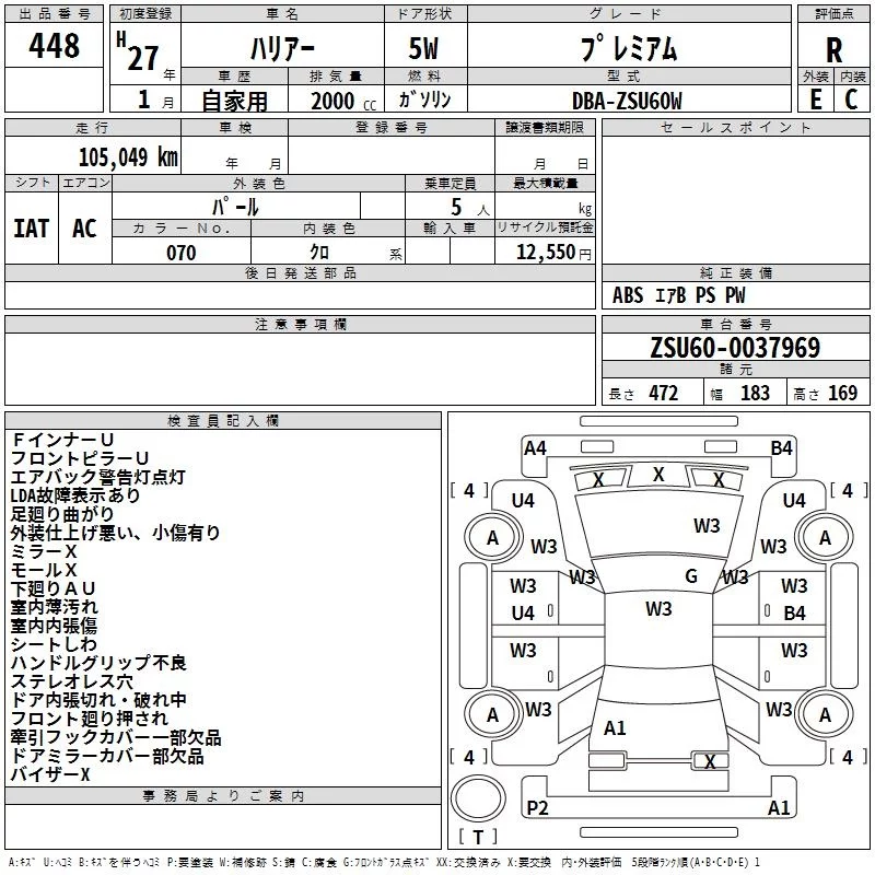 Toyota HARRIER с аукциона Японии TAA Kyushu лот № 448