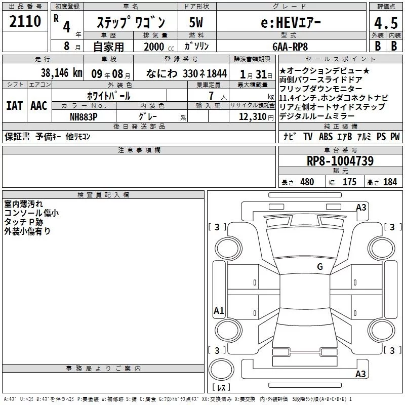 Honda STEP WAGON с аукциона Японии TAA Kinki лот № 2110