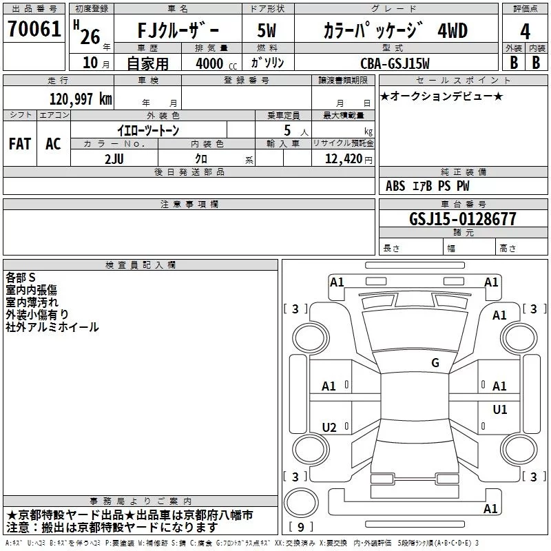 Toyota FJ CRUISER с аукциона Японии TAA Kinki лот № 70061