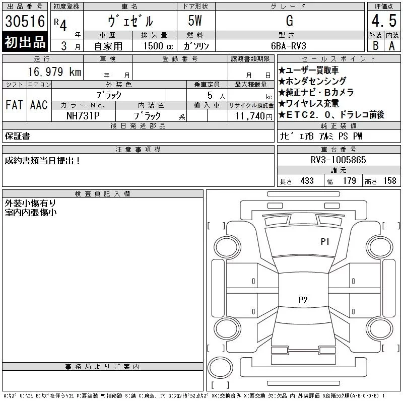Honda VEZEL с аукциона Японии CAA Tokyo лот № 30516
