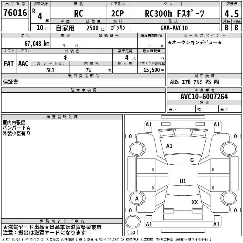 Lexus RC с аукциона Японии TAA Kinki лот № 76016