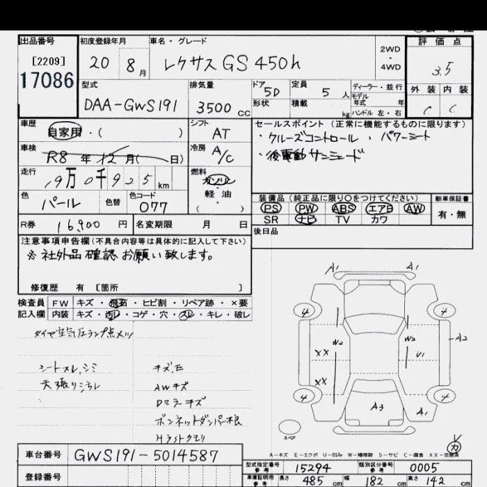 Lexus GS с аукциона Японии JU Saitama лот № 17086