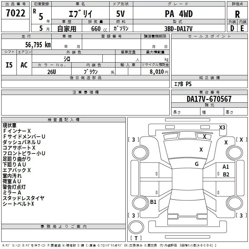 Suzuki EVERY с аукциона Японии TAA Kinki лот № 7022