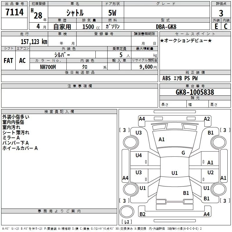 Honda SHUTTLE с аукциона Японии TAA Kinki лот № 7114