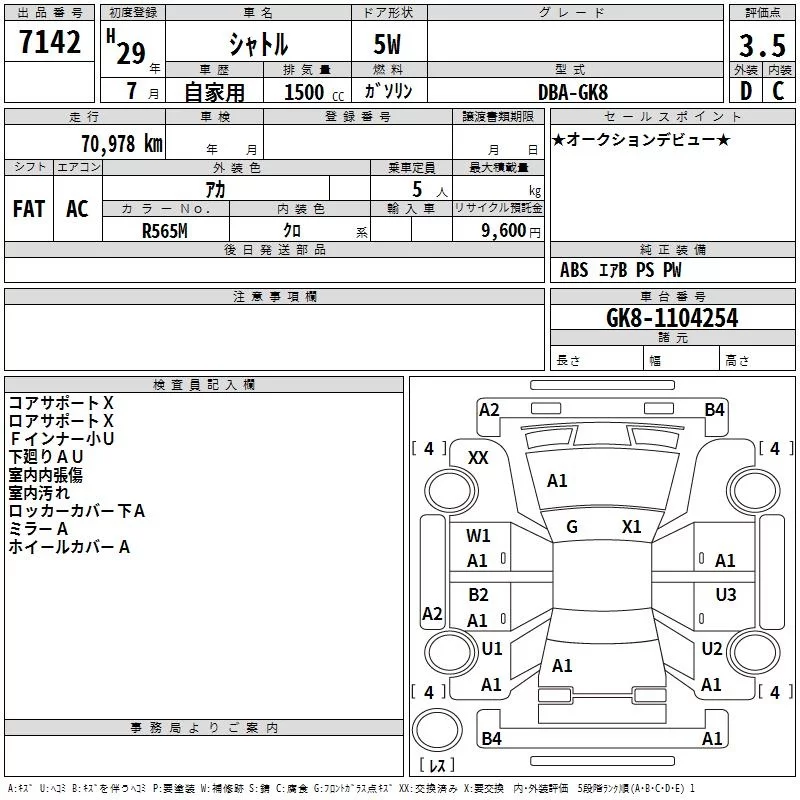Honda SHUTTLE с аукциона Японии TAA Kinki лот № 7142