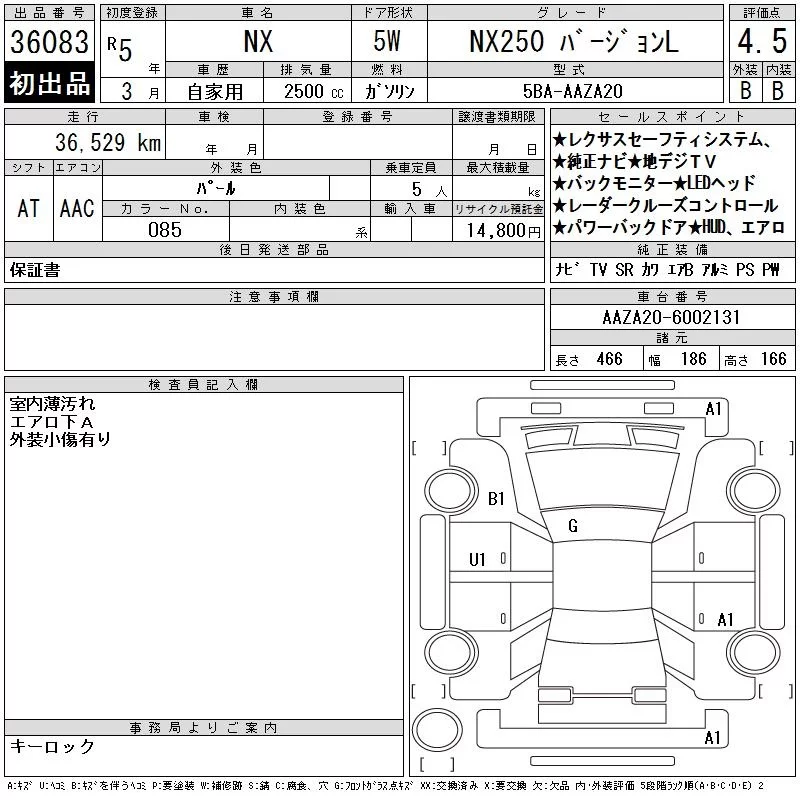 Lexus NX с аукциона Японии CAA Chubu лот № 36083