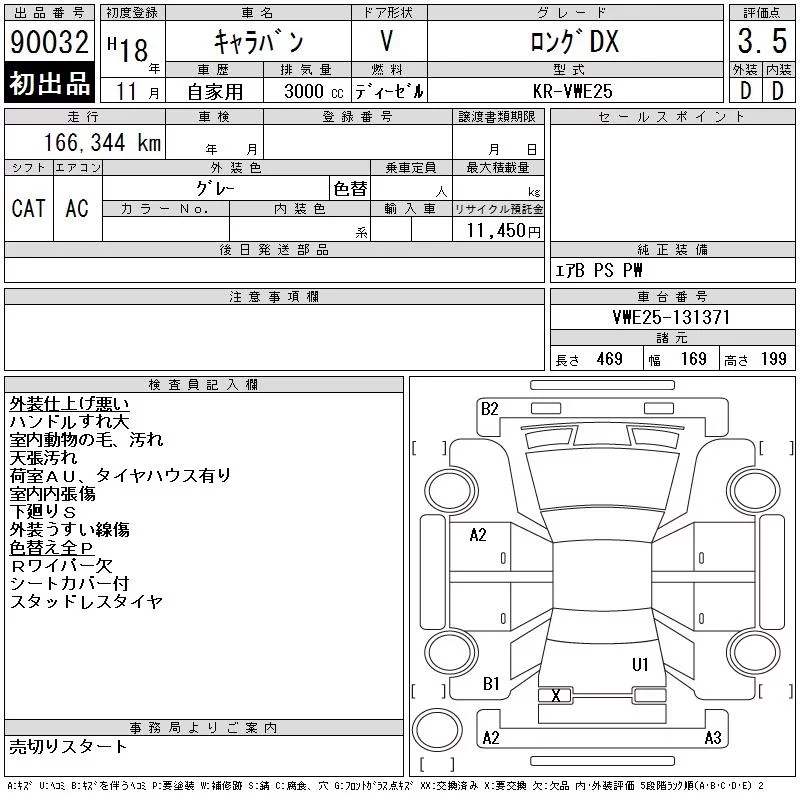 Nissan CARAVAN VAN с аукциона Японии CAA Chubu лот № 90032