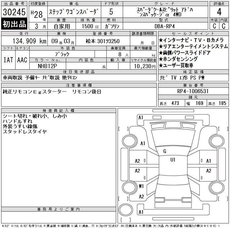 Honda STEP WAGON с аукциона Японии CAA Chubu лот № 30245