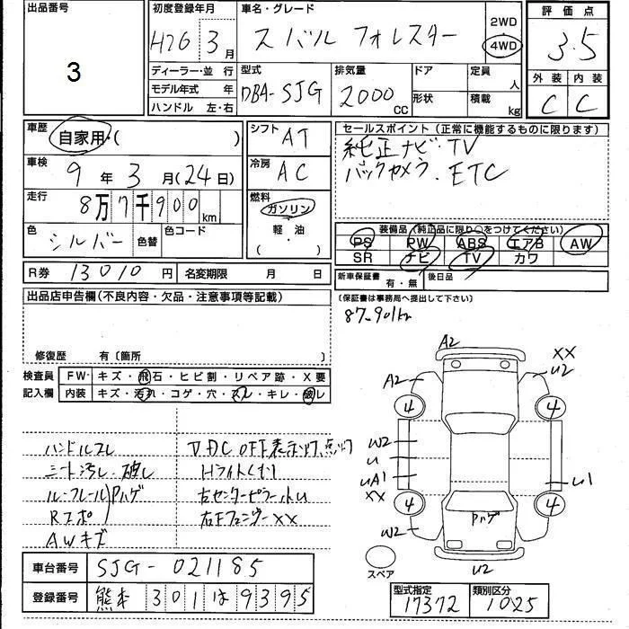 Subaru FORESTER с аукциона Японии JU Kumamoto лот № 3