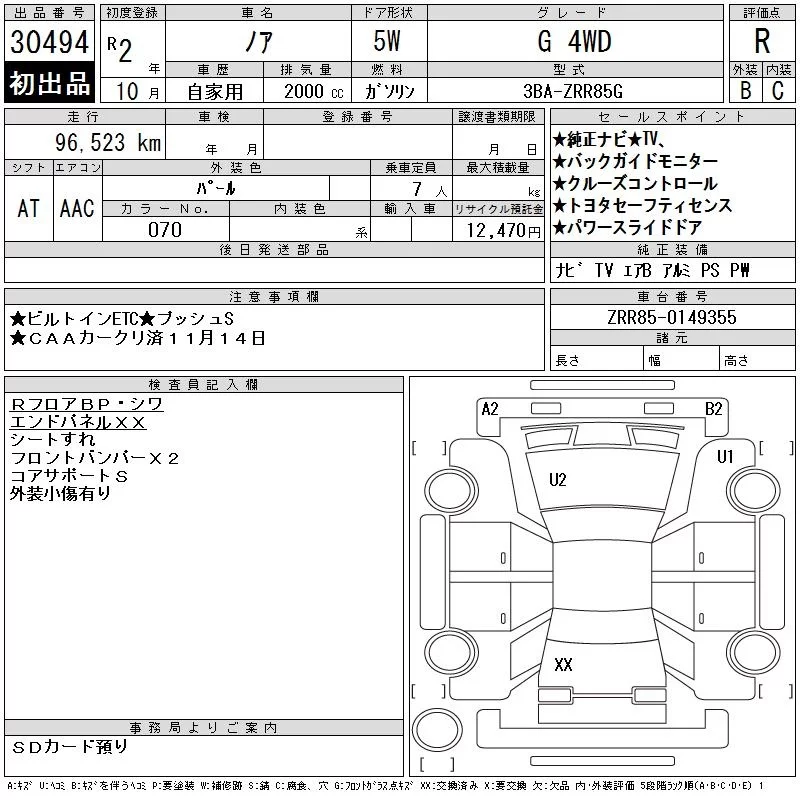 Toyota NOAH с аукциона Японии CAA Chubu лот № 30494