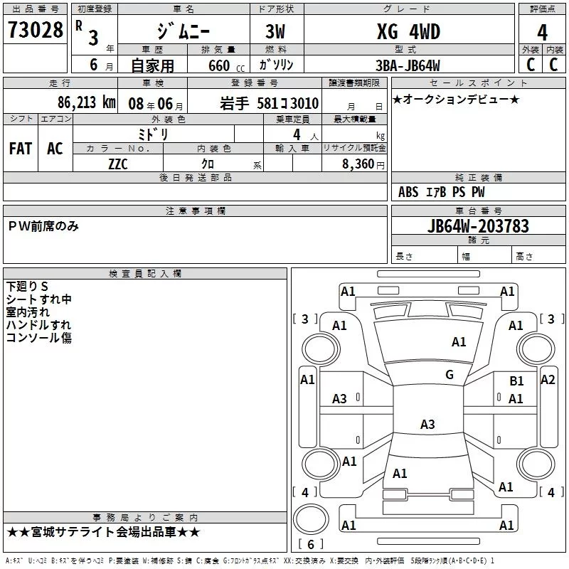Suzuki JIMNY с аукциона Японии TAA Tohoku лот № 73028