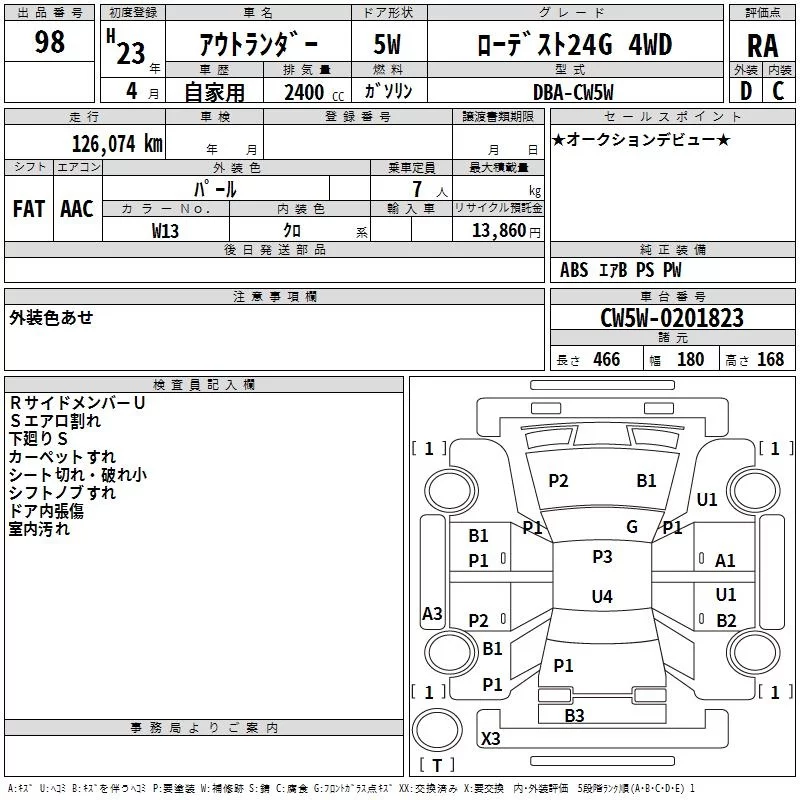 Mitsubishi OUTLANDER с аукциона Японии TAA Chubu лот № 98