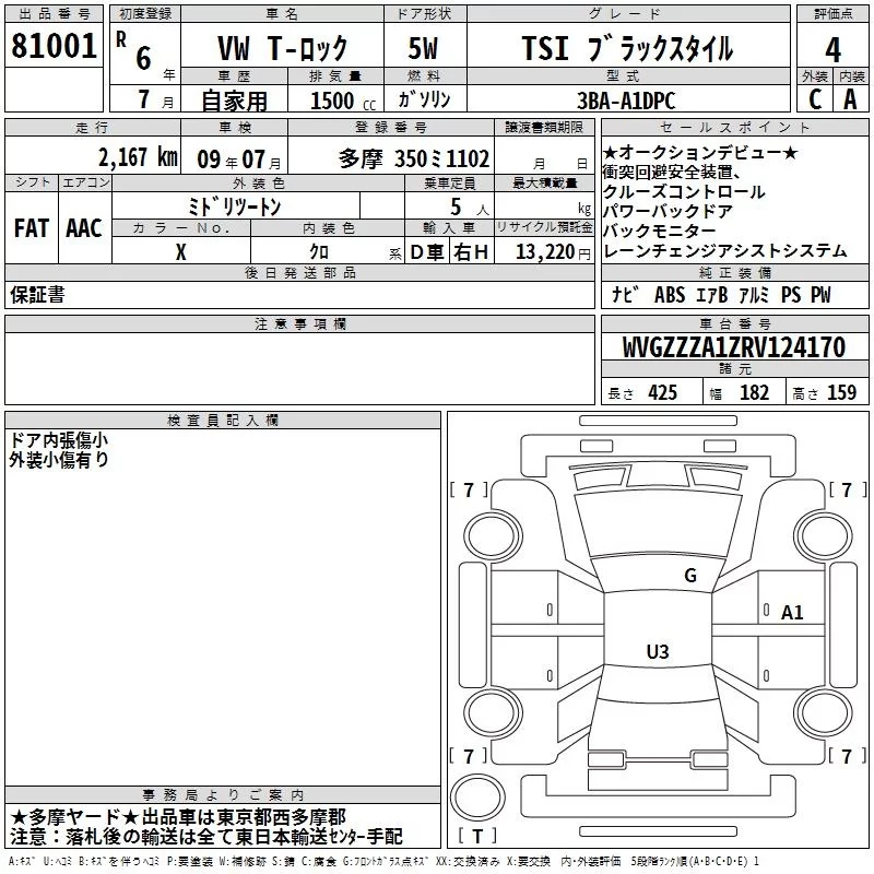 Volkswagen T-ROC с аукциона Японии TAA Kanto лот № 81001