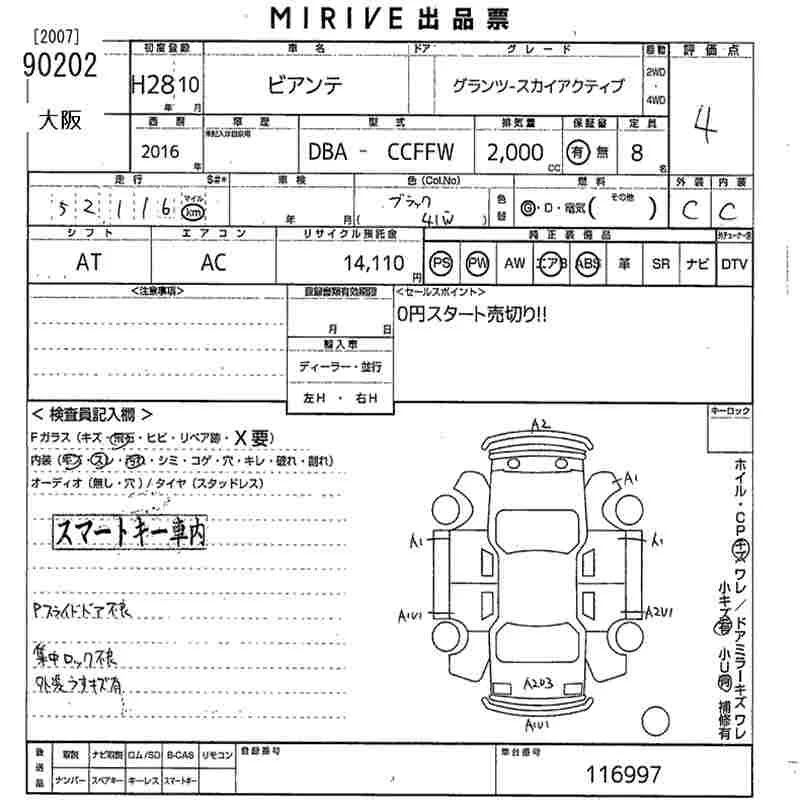Mazda BIANTE с аукциона Японии MIRIVE Osaka лот № 90202