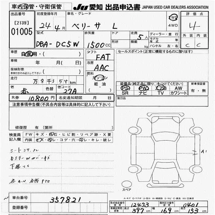 Mazda VERISA с аукциона Японии JU Aichi лот № 1005
