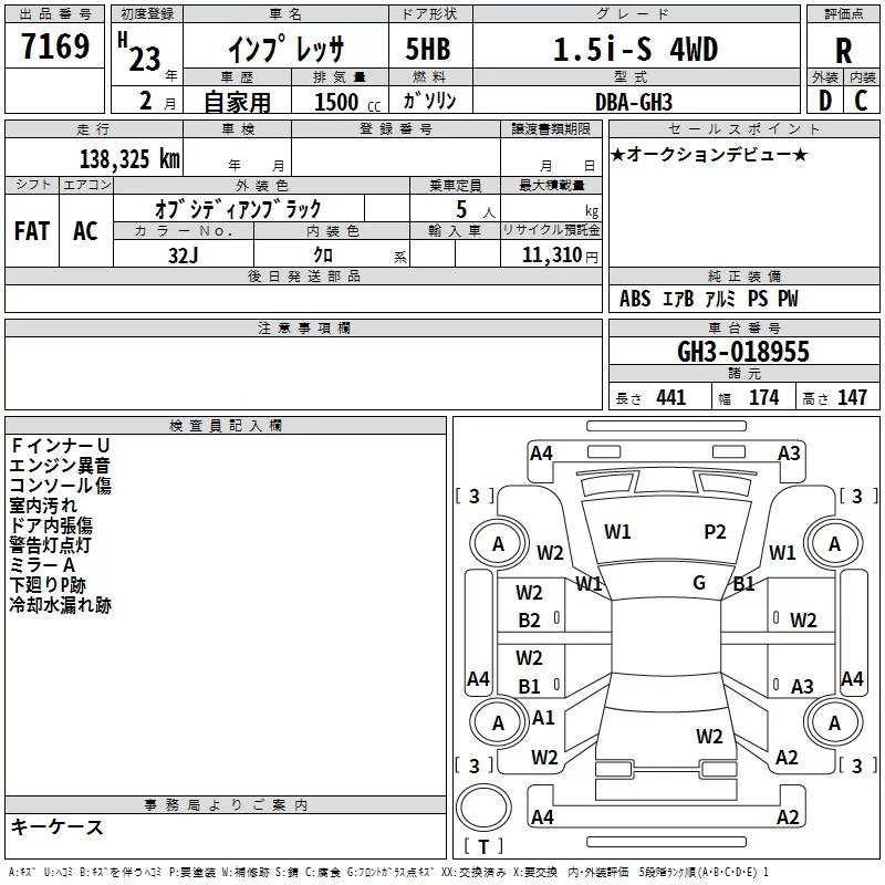 Subaru IMPREZA с аукциона Японии TAA Tohoku лот № 7169