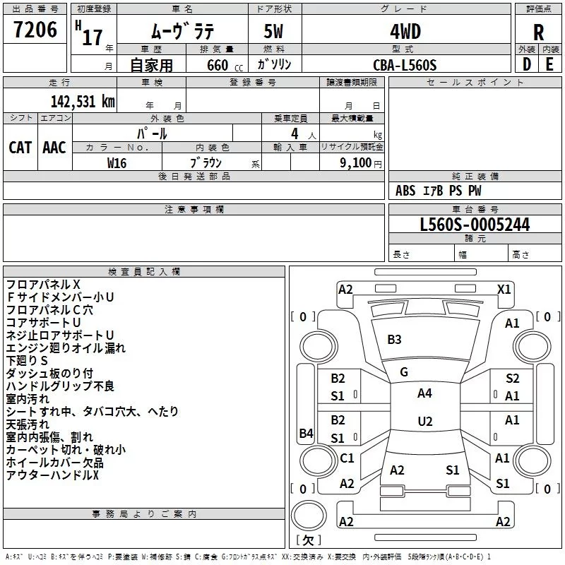 Daihatsu MOVE LATTE с аукциона Японии TAA Tohoku лот № 7206