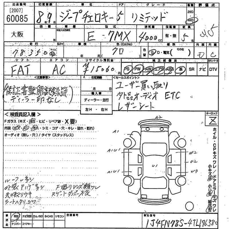 Chrysler JEEP CHEROKEE с аукциона Японии MIRIVE Osaka лот № 60085