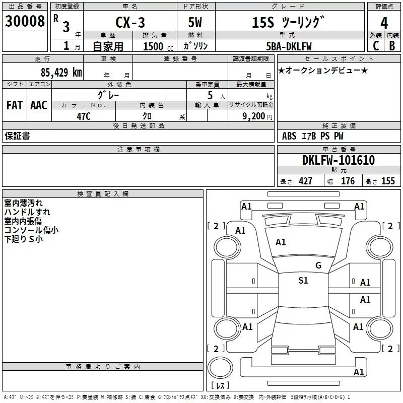 Mazda CX-3 с аукциона Японии TAA Tohoku лот № 30008