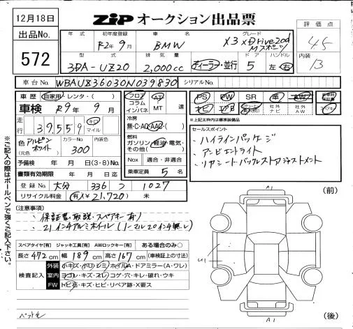 BMW X3 с аукциона Японии ZIP Osaka лот № 572