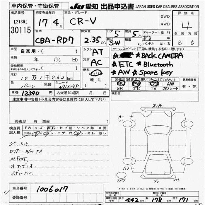 Honda CR-V с аукциона Японии JU Aichi лот № 30115