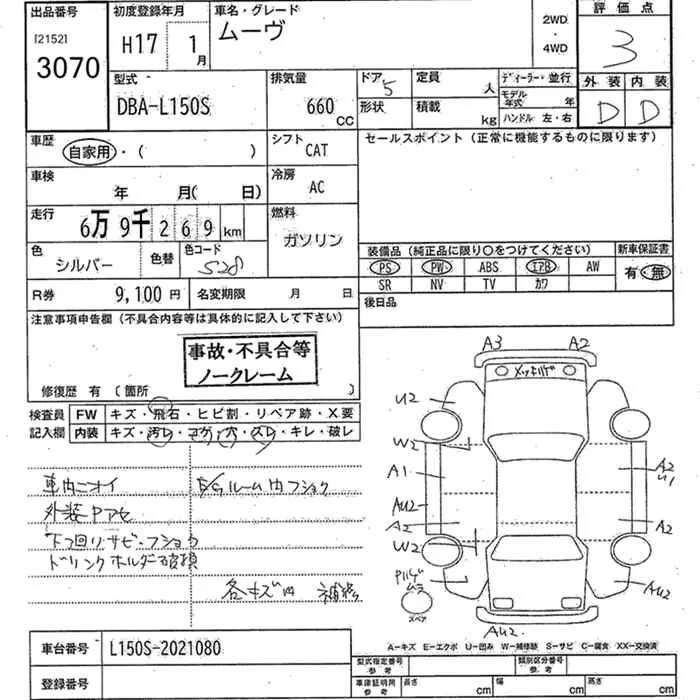 Daihatsu MOVE с аукциона Японии JU Kanagawa лот № 3070