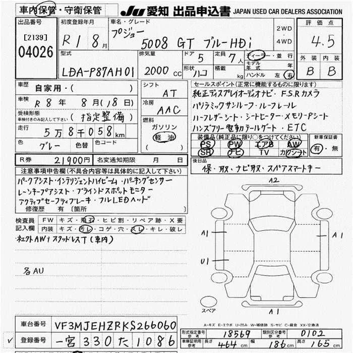 Peugeot 5008 с аукциона Японии JU Aichi лот № 4026