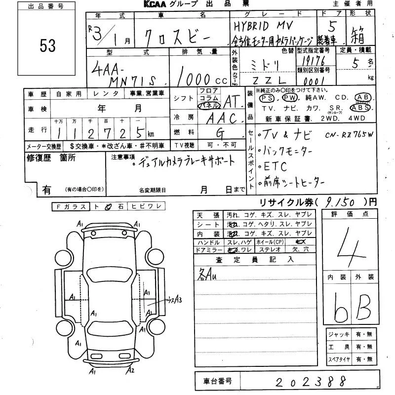 Suzuki XBEE с аукциона Японии KCAA Yamaguchi лот № 53