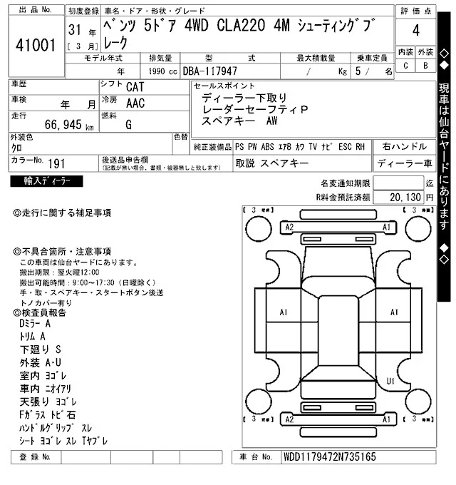 Mercedes-Benz CLA CLASS с аукциона Японии ARAI Bayside лот № 41001