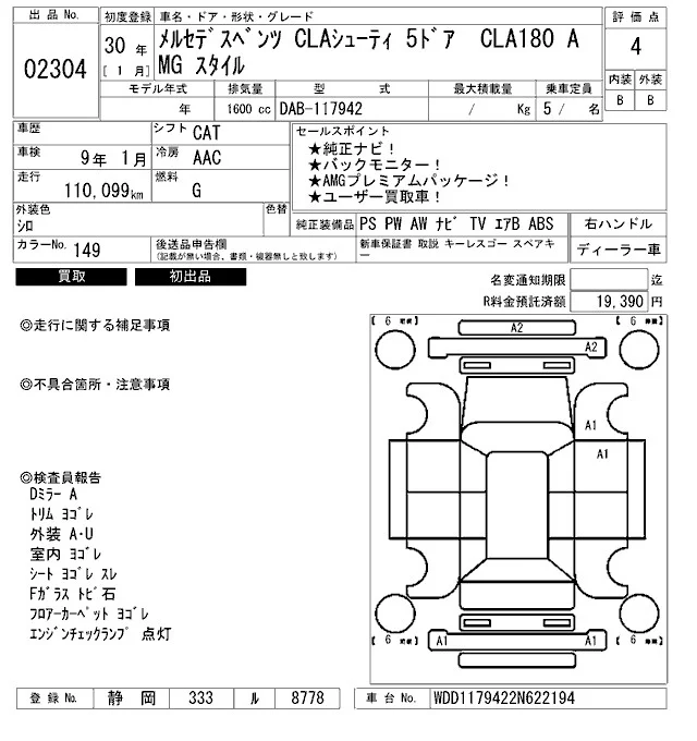 Mercedes-Benz CLA CLASS с аукциона Японии ARAI Bayside лот № 2304