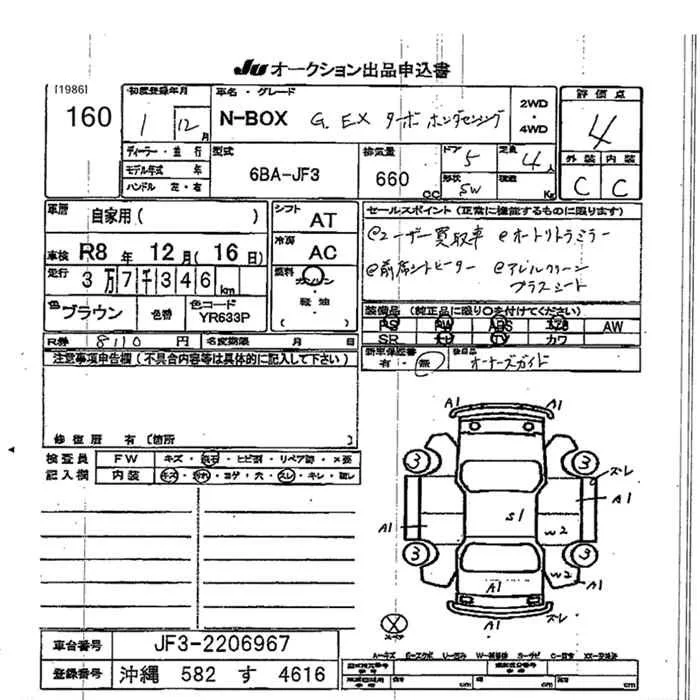 Honda N BOX с аукциона Японии JU Okinawa лот № 160