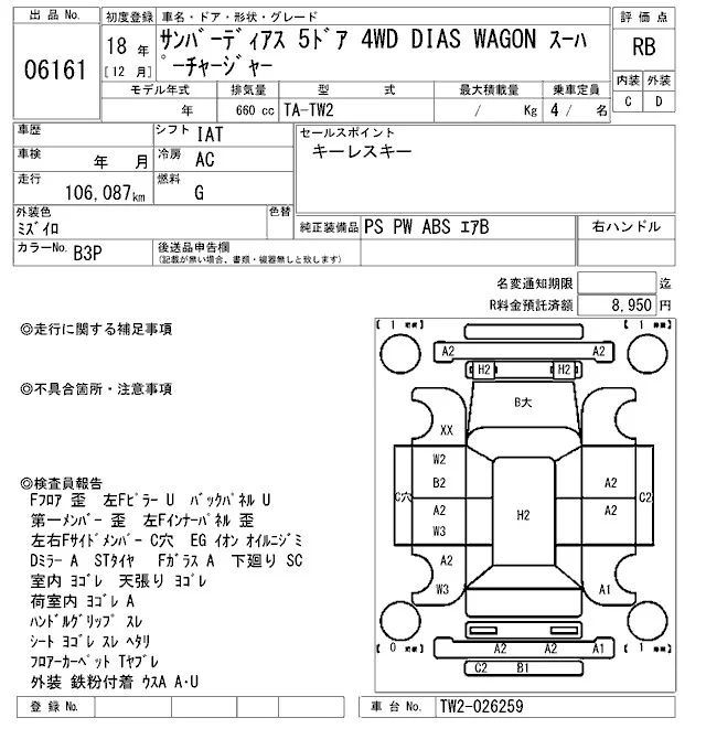 Subaru GOLF ALLTRACK с аукциона Японии ARAI Sendai лот № 6161