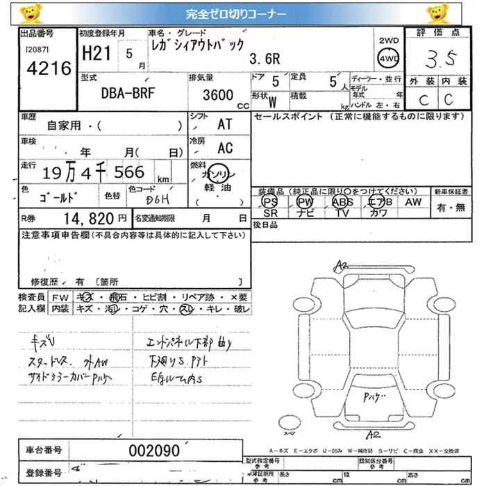Subaru LEGACY OUTBACK с аукциона Японии JU Miyagi лот № 4216